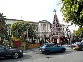 Limassol, as the regional capital and a major centre for European tourism, contains many of the administrative and cultural buildings, and a large number of hotels along the seafront. Limassol District Court is located on Lord Byron Avenue near the Limassol city centre. It consists of a court complex with multiple buildings.[9] The city is known for its wineries, and revelry and nightlife.[10] The Limassol District Archaeological Museum, located in Limassol, has historical artefacts from the towns of Kourion and Amathus.[11] The collections cover several periods, including Preneolithic (Akroteri culture), Early Neolithic (Shillourokambos culture), Neolithic I, Neolithic II (Sotira culture), Chalcolithic, Erimi Culture, Early Bronze Age, Μiddle Bronze Age, Late Bronze Age, Cypro-Geometric period, Cypro-Archaic period, Cypro-Classical period, Hellenistic period, Roman period, and Late Roman/Early Christian/Early Byzantine period.[12] The Painted Churches in the Troödos Region is a UNESCO World Heritage Site, and one of the churches, Timios Stavros (Holy Cross) is situated in Pelendri, Limassol District.[13]