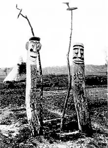 - Jangseung, a totem pole traditionally placed at the edges of villages to mark for village boundaries and frighten away demons; also worshipped as tutelary deities[13]