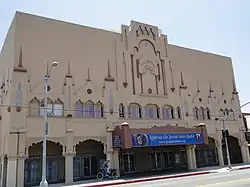 The Lincoln Theater is a historic theater in South Los Angeles, California. The Moorish Revival building was listed on the National Register of Historic Places in 2009. Sometimes referred to as the "West Coast Apollo",[3] the Lincoln Theater was one of the most significant establishments along the Central Avenue Corridor that became the cultural and business hub of the African American community in Los Angeles from the 1920s to the 1950s. For more than 30 years, the Lincoln featured live theater, musical acts, talent shows, vaudeville, and motion pictures, including live performances by the leading African-American performers of the era, including Lionel Hampton, Duke Ellington, the Nat King Cole Trio, and Billie Holiday. The Lincoln Theater was managed and directed by Jules Wolf [4][5] The theater was converted to use as a church in 1962 and continues to be used for religious services.[6]