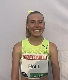 At the 2020 Tokyo Olympics Hall came third in both her heat and semi-final of the Women's 1500m, each time improving her time. She thus made the final of the 1500m, where she finished in 6th position, with a personal best time of 3:59.01.[7]