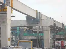 The foundation stone for the project was to be laid by Prime Minister Manmohan Singh on 29 November 2008, but was postponed following the 2008 Mumbai attacks.[17] Then Maharashtra Chief Minister Ashok Chavan laid the foundation stone in a ceremony at the Acres Club, Chembur on 9 February 2009.[16] The MMRDA commissioned the construction of the line in two phases. The first stretch linked Wadala with Chembur in the north-east, and the second connected Wadala with Jacob Circle in South Mumbai.[17] The original deadline for the project was April 2011.[18] The project has missed several deadlines for completion. The following months had all been announced as deadlines for the first phase - December 2010, May 2011, November 2011, May 2012, December 2012, June 2013, August 2013, 15 September 2013,[19] October 2013 and December 2013. Deadlines announced for the second phase were May 2011, December 2011, May 2012, December 2012, December 2013, June 2014, December 2014, March 2015, December 2015 and "mid-2016".[20]