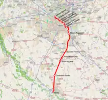 Line S13, a cross-city route, heads initially in a southerly direction from Milano Bovisa-Politecnico through the Milan Passante railway to Milano Rogoredo. From there, it turns southwest towards its southern terminus, Pavia.[2]