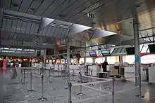 The airport covers an area of 383 hectares (946 acres) of land and features one passenger terminal, two runways and extensive logistics and maintenance facilities.[19] Linz Airport is relatively small, with 11 gates. There is a shop and café in the entrance hall, connected to the check-in and airline desks. Beyond the security checks there is a duty-free shop and a small café accessible from both the domestic and international gate areas.