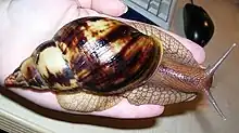 Lissachatina albopicta, common name the African land snail, is a species of large air-breathing land snail, a terrestrial pulmonate gastropod mollusk in the family Achatinidae. [1]