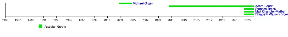 - ↑ Resigned from the Greens and continues to sit as an independent.