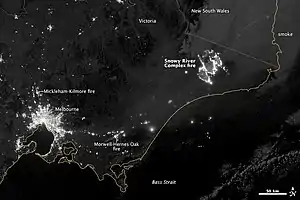 - ↑ "Weather offers reprieve in Gippsland blaze". ABC News. Australia. 2 February 2011. Retrieved 3 February 2011.