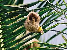 Baya weavers at partly built nest