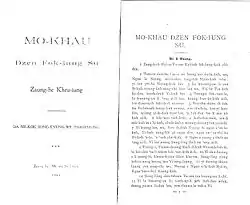 - ↑ 'Kiʻu-tsʻu iâ-sou ki-tok kâi sin-ieh tshuân-tsu chien-kʻng Mʻa-thʻai k̈ʻau Sʻai-thû.'. Tãi Eng-kok lãi gūa Siàn-tsṳ-hũe Ìn. 1892.