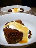 Spotted dick 19th century[41] Sweet National Pudding with suet pastry and dried vine fruits, usually served with custard
