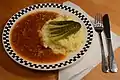 Teichelmauke Main course A dish that consists of mashed potatoes with bouillon and cooked beef.