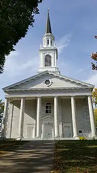 ![]() | Middlebury Chapel | 1916[2] | Chapel for formal events; built in the style of a traditional New England meeting house combined with the marble of the American neoclassical style. Above the colonnade is a quote from Psalm 95, "The strength of the hills is His also." Also has an 11-bell carillon.[2] | |