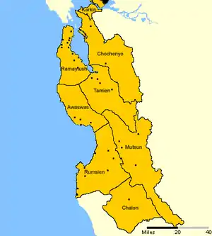 - Lamchin – present-day San Mateo County, Bay shore from Belmont south to Redwood City and valleys to the west