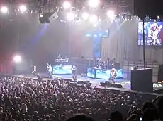 For the first leg of the Speak of the Devil Tour in December 1982, Osbourne and his band performed with UFO bassist Pete Way.[16] After Gillis left to return to Night Ranger, the position of guitarist was filled at the end of the year by Jake E. Lee, formerly of Ratt and Rough Cutt.[17] George Lynch, who had previously auditioned for the band in 1979, was initially given the role by Osbourne, but was then immediately fired when Lee was brought in.[18] Don Costa took over from Way for the remainder of the tour,[19] before Bob Daisley returned in time to perform at the US Festival in May.[20] After the recording of Bark at the Moon, Tommy Aldridge was replaced by Carmine Appice, although by early 1984 he had returned due to personal differences and tensions between Osbourne and the new drummer.[21] By the time the Bark at the Moon Tour had finished in January 1985, Aldridge had decided to leave the band again, having not fully enjoyed the role since Rhoads's death.[22]