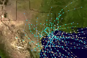 The first two storms of the 1888 Atlantic hurricane season made landfall in the same area of Texas.[17]