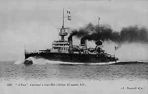 | Iéna | 4 × Canon de 305 mm Modèle 1893 guns | 320 mm (12.6 in) | 12,105 t (11,914 long tons) | 3 shafts, triple-expansion engines, 17 kn | 15 January 1898 | 14 April 1902 | Destroyed by magazine explosion, 12 March 1907 |