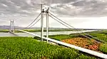 ![]() | 2 | Ostrovul Mare Bridge | Podul Ostrovu Mare | 240 m (790 ft) | 360 m (1,180 ft) | Suspension Central span steel deck, side spans concrete deck, concrete pylons 60+240+60 | 1998 | Gogoșu–Ostrovu Mare Island 44°19′14.7″N 22°34′29.4″E / 44.320750°N 22.574833°E | Oltenia | [7] [8] | |