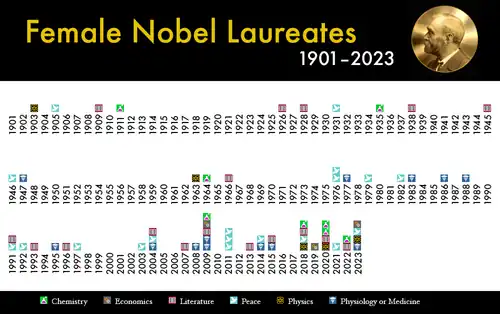 - ↑ Vereckey, Betsy (March 15, 2022). "The 58 women who have won the Nobel Prize". The Telegraph. Retrieved 22 May 2022.