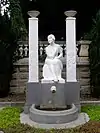 The fountain contains the life-sized sculpture of opera singer Oľga Trebitschová (1887-1919) called Cantus by Alojz Rigele, ordered by her husband, banker Dionýz Trebitsch in 1919. The marble sculpture is accompanied by two pillars with flower-holders atop. The fountain is a protected monument with the number 101-506/2 in the Slovak Republic. |