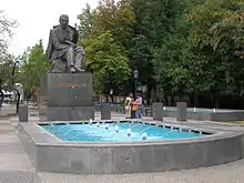 This is a list of fountains, drinking fountains and water wells in Bratislava, the capital of Slovakia. Approximately half of the over 140[1] fountains found in the city form part of the picturesque landscape of the medieval Old Town of Bratislava (the city was known in the past under many names) and serve as tourist attractions while many of the newer fountains are fine examples of socialist era building of modern panelák city suburbs. The number of fountains in Bratislava is comparable to the four times larger neighboring Austrian capital Vienna.[2]