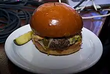 | Butter burger | ![]() | Most likely first served in 1936 at Solly's Grille in Milwaukee | In the Upper Midwest, particularly Wisconsin, burgers are often made with a buttered bun, butter as one of the ingredients of the patty or with a pat of butter on top of the burger patty.[10] |
