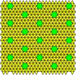Finally, if the number of types of vertices is the same as the uniformity (m = k below), then the tiling is said to be Krotenheerdt. In general, the uniformity is greater than or equal to the number of types of vertices (mk), as different types of vertices necessarily have different orbits, but not vice versa. Setting m = n = k, there are 11 such tilings for n = 1; 20 such tilings for n = 2; 39 such tilings for n = 3; 33 such tilings for n = 4; 15 such tilings for n = 5; 10 such tilings for n = 6; and 7 such tilings for n = 7.