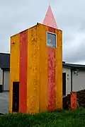 | Kópanesviti | L4567 | Vestfirðir | 1971 | 25 m (82 ft) | 7 m (23 ft) | Orange rectangular structure, white lantern house on roof. | Active | ![]() |