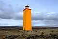 | Ingólfshöfðaviti | L4772 | Suðurland | 1948 | 75 m (246 ft) | 10 m (33 ft) | Orange square tower, red lantern house. | Active | ![]() |