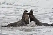 - ↑ Tenorio, A. R.; Verplancken, F. R. E.; Reynoso, J. P. G.; Márquez, L. A. Á.; Acuña, I. D. B. (2 October 2023). "Records of Southern elephant seals (Mirounga leonina) in the southern Mexican Pacific". Latin American Journal of Aquatic Mammals. 18 (2). doi:10.5597/lajam00311. ISSN 2236-1057.