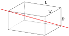 Solid cuboid of height D, width W, and length L, and mass m, rotating about the longest diagonal.