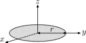 Thin, solid disk of radius r and mass m.