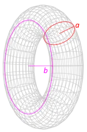 This is a special case of a torus for a = 0 (see below), as well as of a thick-walled cylindrical tube with open ends, with r1 = r2 and h = 0.
