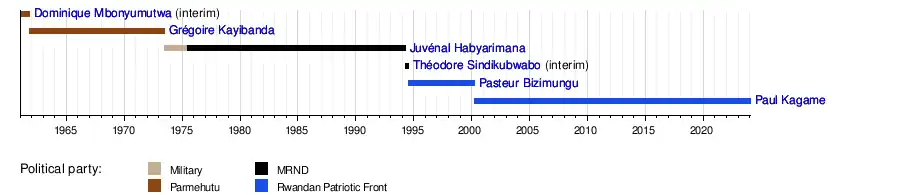 1961 | 26 October 1961 | 1 July 1962 | 248 days | Parmehutu | Himself | |