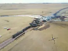 - ↑ "Iowa oil spill: Railroad track reopened at site of Doon train derailment, oil leak". Des Moines Register. 26 June 2018. Retrieved 10 July 2018.