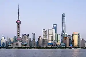 The city of Shanghai, China is one of the fastest-growing cities in the world in terms of skyscraper construction,[1] with the City of Shanghai reporting at the end of 2004 that there had been 6,704 buildings of 11 stories or more completed since 1990.[2] In 2011 there are over 20,000 buildings 11 stories or higher and more than 1,000 buildings exceeding 30 stories in Shanghai.[3] As of January 2019, there are 165 high-rise buildings either under construction, approved for construction, or proposed for construction, of which five are over 300 m (980 ft) high.[4]