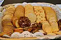 This is a list of snack foods in alphabetical order by type and name. A snack is a small portion of food eaten between meals. They may be simple, prepackaged items, raw fruits or vegetables or more complicated dishes but they are traditionally considered less than a full meal.