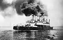 The term "battleship" first entered common parlance to describe certain types of ironclad warships in the 1880s,[1] now referred to as pre-dreadnoughts. The commissioning and putting to sea of HMS Dreadnought, in part inspired by the results of the Battle of Tsushima in May 1905,[2] marked the dawn of a new era in naval warfare and defining an entire generation of warships: the battleships. This first generation, known as the "Dreadnoughts", came to be built in rapid succession in Europe, the Americas, and Japan with ever more tension growing between the major naval powers. However, despite the enormous sums of money and resources dedicated to the construction and maintenance of the increasing number of battleships in the world, they typically saw little combat. With the exception of the naval battles of the Russo-Japanese War and Jutland, which would be one of the last large-scale battles between capital ships,[3] no decisive naval battles between battleships were fought. When the First World War ended in 1918, much of the German High Seas Fleet was escorted to Scapa Flow, where almost all of the fleet was scuttled to prevent its being divided amongst the victorious Allies. Numerous other battleships were scuttled for similar reasoning.