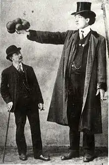 | Canada | 236 cm | 7 ft 9 in | Édouard Beaupré | Possible tallest strongman as well as possible tallest wrestler in history. His death certificate claimed 8 ft 3 in (2.51 m) tall and still growing. Though other sources say 7 ft 8 in (2.34 m).Guinness stated he was 7 ft 9 in (2.36 m)[61] | 1881–1904 (23) |