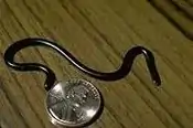 | Ramphotyphlops braminus | Brahminy blind snake, flowerpot blind snake | Presence on Anguilla recently discovered. Widely distributed in the tropics, but limited in the Lesser Antilles. | ![]() |