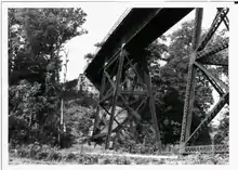 In 1872, Bollman's firm, Patapsco Bridge and Iron Works completed the bridge and viaducts with a total length of 705 feet, span over little pipe creek of 135 feet,[lower-alpha 1] trestle consisting of 19 spans, eleven on the Frederick County side and eight on the Carroll County side of the creek.[1]