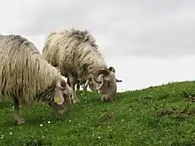 Common sheep breeds in this region include Carranzana, Latxa, and Sasi ardi.[4] The Carranzana and Laxta sheep are most renowned for their role in the dairy industry. The vast majority of the milk obtained from these sheep is made into cheese; the farms themselves turn approximately 47% of it into cheese, while a slightly smaller percentage is made into cheese by dairy factories who buy the milk from the farms. The rest of the milk is kept in its original form for sale. Carranzana and Laxta sheep play an insignificant role in the wool industry. Dairy sheep make up a crucial part of Basque economy in certain regions where there is a lack of other prominent industries.[6]