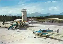 The airport was officially opened in December 1963.[4] It replaced Polje Airport in the former Municipality of Polje near Ljubljana,[5] which served as the city's airport from 1933 and was Slovenia's first civil airport.[6] Regular flights from the new airport at Brnik began in January 1964.[4]