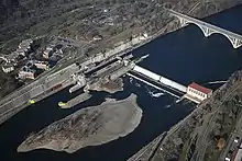 Ford Dam, officially known as Lock and Dam No. 1, is on the Upper Mississippi River and is located between Minneapolis and Saint Paul, Minnesota just north of the confluence of the Mississippi with the Minnesota River at Mississippi River mile 847.9, in Minneapolis. The powerhouse portion was previously owned by the Ford Motor Company, which operated a hydroelectric power station to feed electricity to its Twin Cities Assembly Plant on the east side of the river. It was sold to Brookfield Power Co. in April 2008. The dual-lock facility and dam was built and is operated by the St. Paul district of the U.S. Army Corps of Engineers' Mississippi Valley Division.[1][2][3]