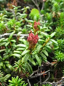 Kalmia procumbens, commonly known as alpine azalea[1] or trailing azalea,[2] is a dwarf shrub of high mountain regions of the Northern Hemisphere that usually grows no more than 10 centimeters (4 in) tall. Originally named by Linnaeus as Azalea procumbens, it is also named after French botanist L.L.A. Loiseleur-Deslongchamps - Loiseleuria procumbens.