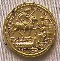 - ↑ The medallion is named for its mint mark from Augusta Treverorum (Trier); it was discovered in Arras, France, in the 1920s.