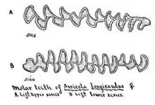 The scientific name of the long-tailed vole is Microtus longicaudus. The generic name, Microtus, derives from the Greek words μικρός meaning "small" + οὖς "ear".[4] In Latin, the species name longicaudus derives from longus meaning "long" and cauda meaning "tail".[4] The type specimen was a female collected by Vernon Orlando Bailey in the Black Hills at an altitude around 5,500 ft (1,700 m) near Custer, South Dakota, on July 19, 1887.[5][6] The description was published by C. Hart Merriam in The American Naturalist the following year.[5] The original scientific name was Arvicola longicaudus.[5] Certain features of the molars were noted, which distinguished the long-tailed vole from other voles known at the time.[5] The species was formerly sometimes regarded as a member of the Old World genus Chionomys.[2]