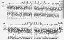 Fifth edition of Encyclopædia Britannica, 1817, top, compared to the sixth edition of 1823; the only change (aside from the elimination of the ct ligature, as in "attraction") was the removal of the long s from the typeface.