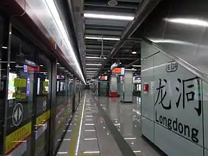 Longdong station (Chinese: 龙洞站), is a station of Line 6 of the Guangzhou Metro. It started operations on 28 December 2016.[1]