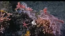 Lophelia pertusa, the only species in the genus Lophelia,[2][3] is a cold-water coral that grows in the deep waters throughout the North Atlantic ocean, as well as parts of the Caribbean Sea and Alboran Sea.[4] Although L. pertusa reefs are home to a diverse community, the species is extremely slow growing and may be harmed by destructive fishing practices, or oil exploration and extraction.[5]