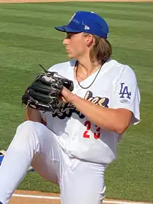 Kopp made his professional debut with the Arizona Complex League Dodgers in 2021 and pitched 2022 with Rancho Cucamonga Quakes and Great Lakes Loons. He spent 2023 with Great Lakes,[74] pitching in 30 games (21 starts), where he was 0–4 with a 2.99 ERA and 107 strikeouts.[75] He was selected to play for the Glendale Desert Dogs in the Arizona Fall League after the season[76] and made the Fall Stars game.[77]