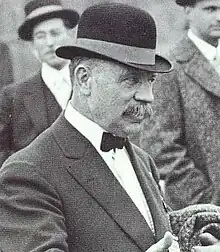 Around the time that Moskovics' career brought him to Los Angeles, in 1909, Carl Fisher was developing the Indianapolis Motor Speedway, and automobile racing was gaining momentum as a business.[3][4] To bring racing to Los Angeles, Moskovics partnered with his old friend Prince; a group of local businessmen including oil man and racing enthusiast Frank A. Garbutt; and the Pacific Electric Railway Company, which supplied spectators by building a line to the new track.[4][6] Public announcements were made and contracts were let in January 1910, and race dates for officially-sanctioned contests were obtained from the Automobile Association of America's Contest Board.[7][8][9]